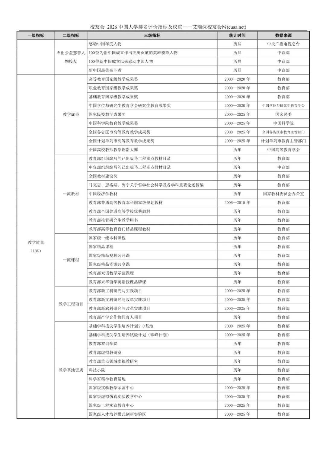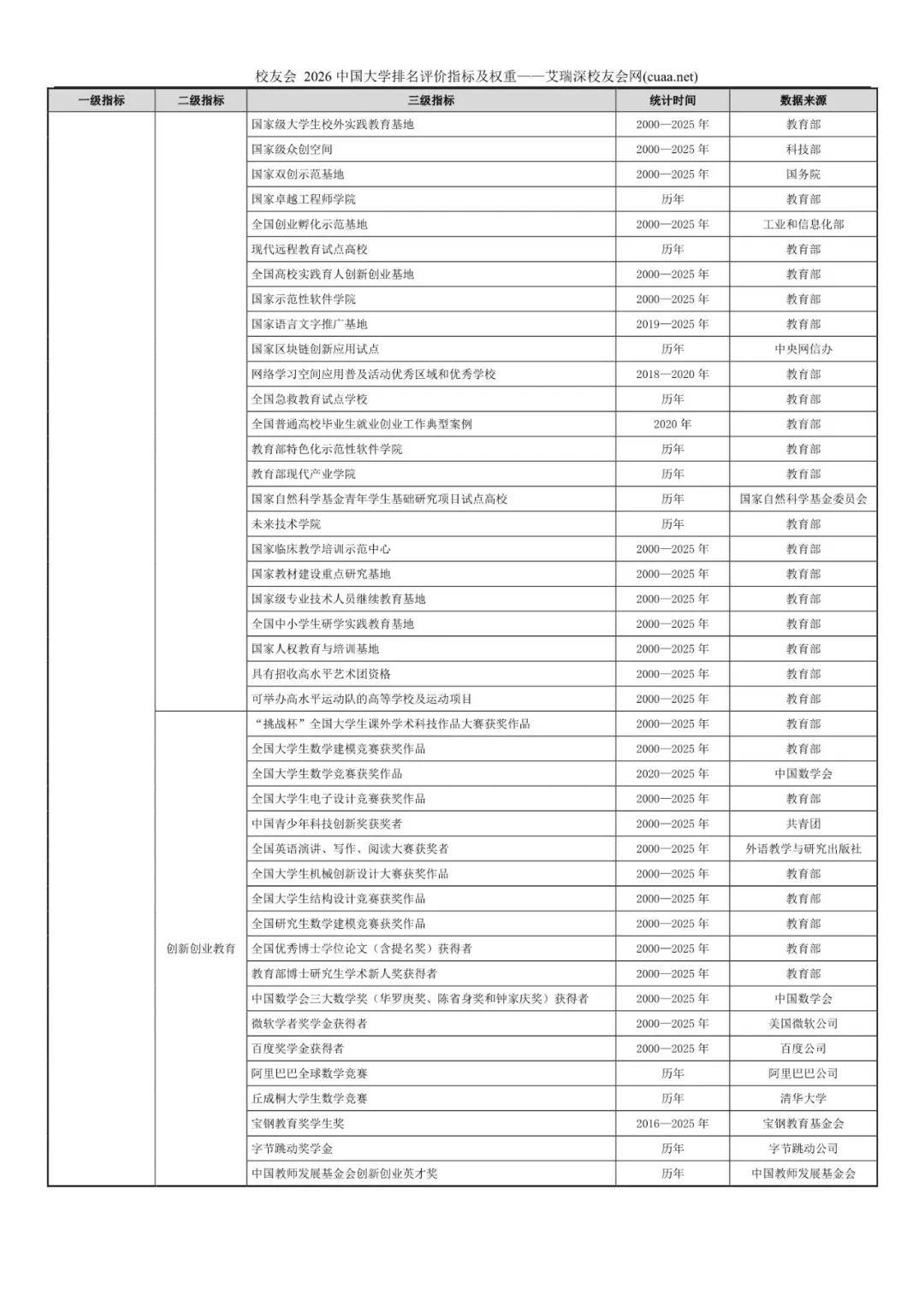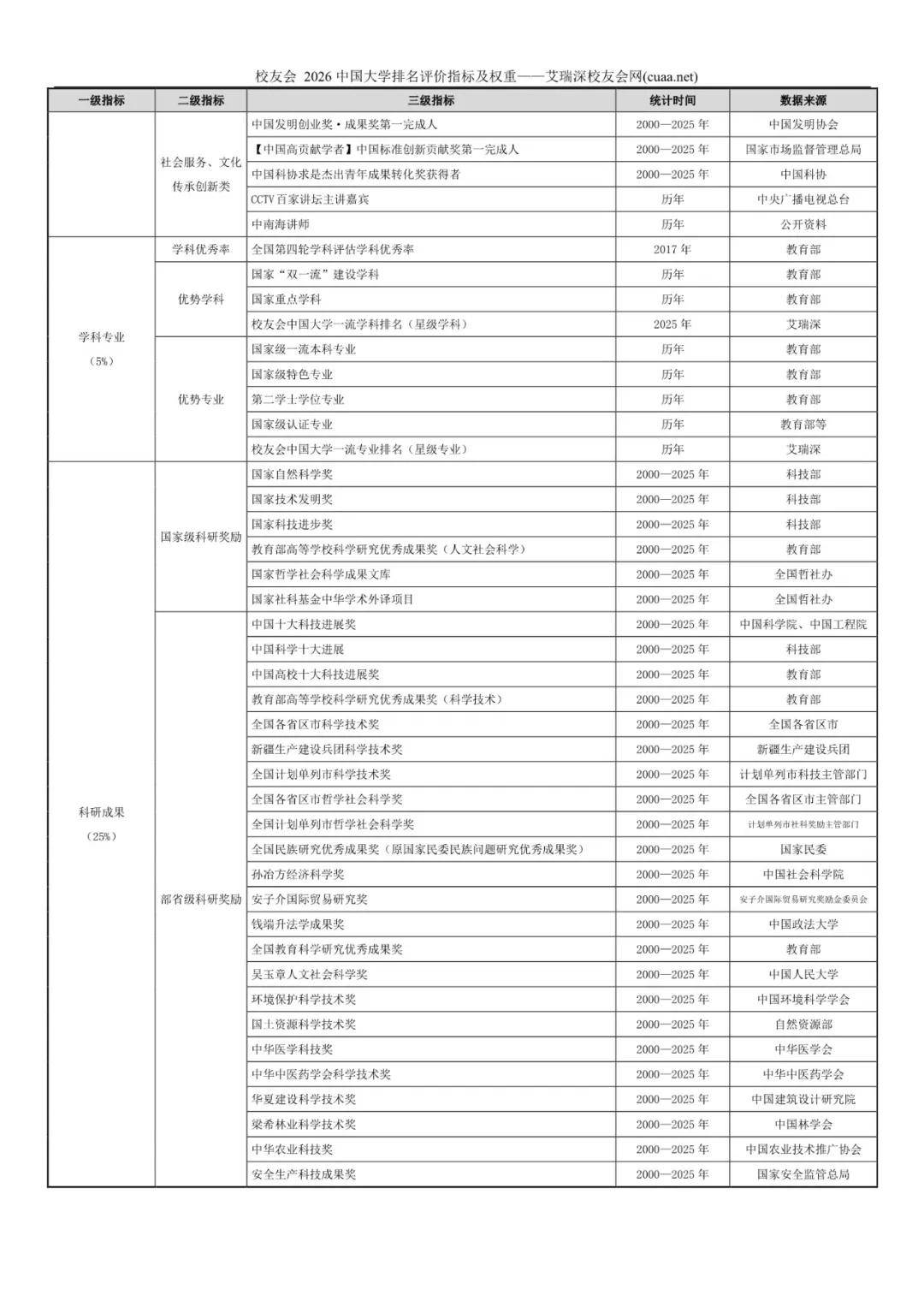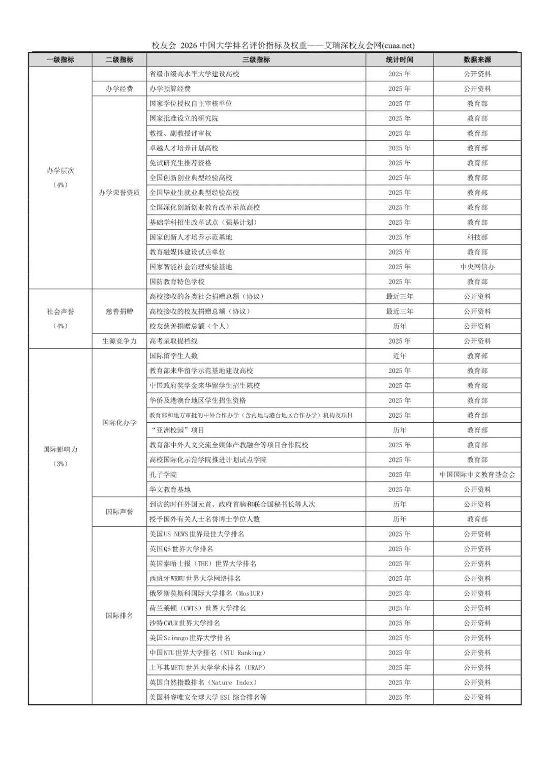| 校友会2026年中国大学排名评价指标体系 | |||