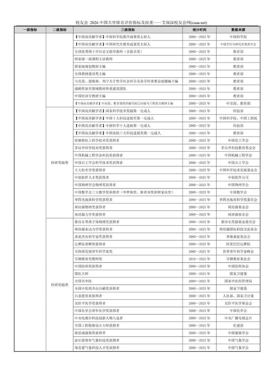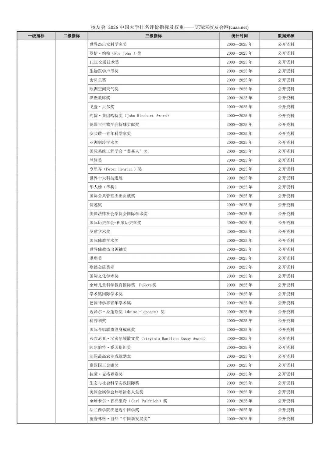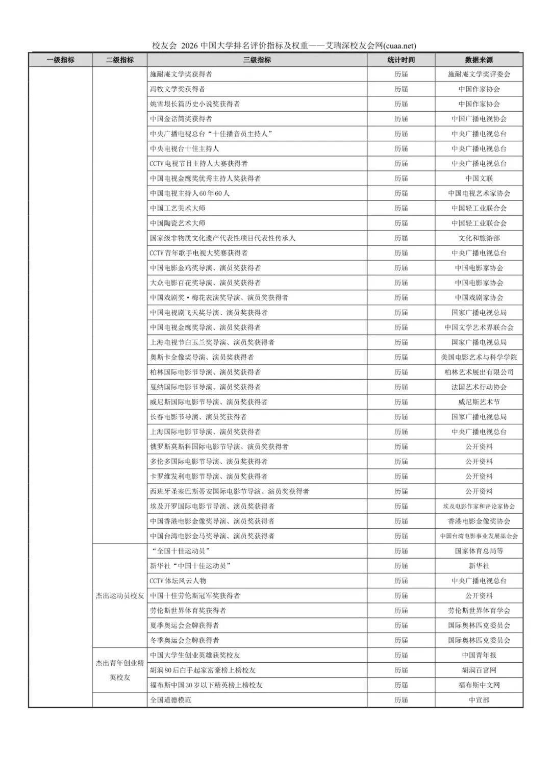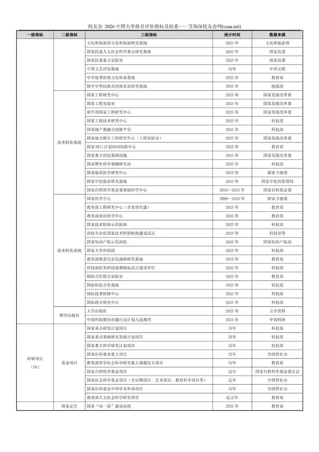 | 校友会2026年中国大学排名评价指标体系 | |||