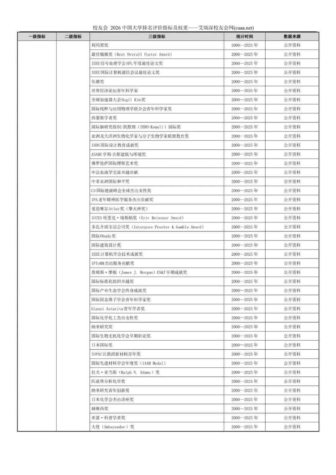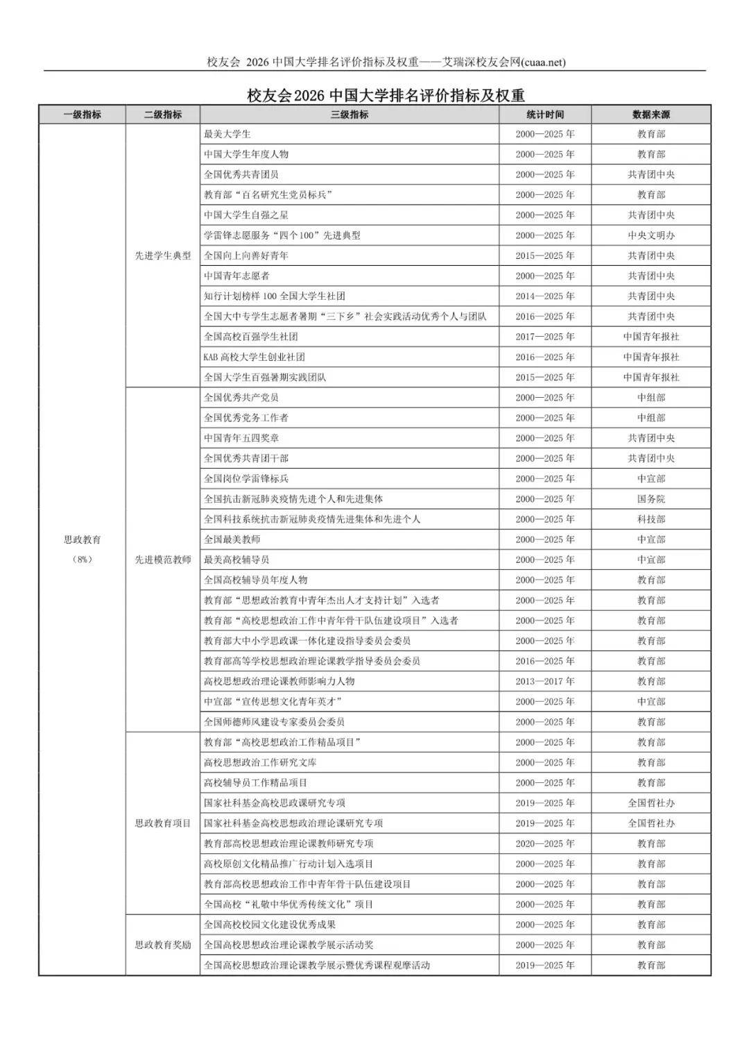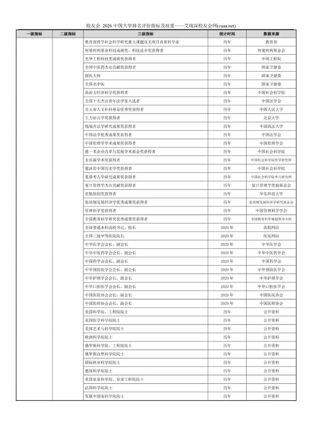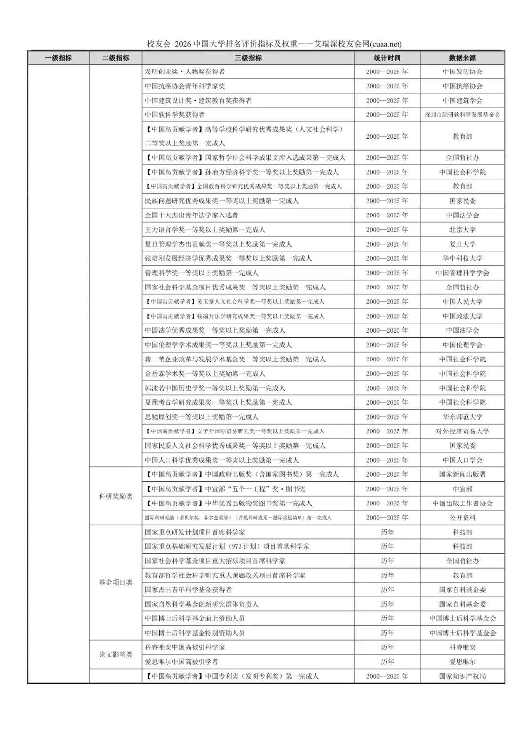 | 校友会2026年中国大学排名评价指标体系 | |||