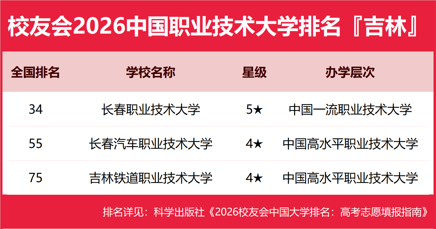 | 校友会2026年吉林省大学排名,吉林大学、长春财经学院、长春职业技术大学、吉林交通职业技术学院第一 | |||